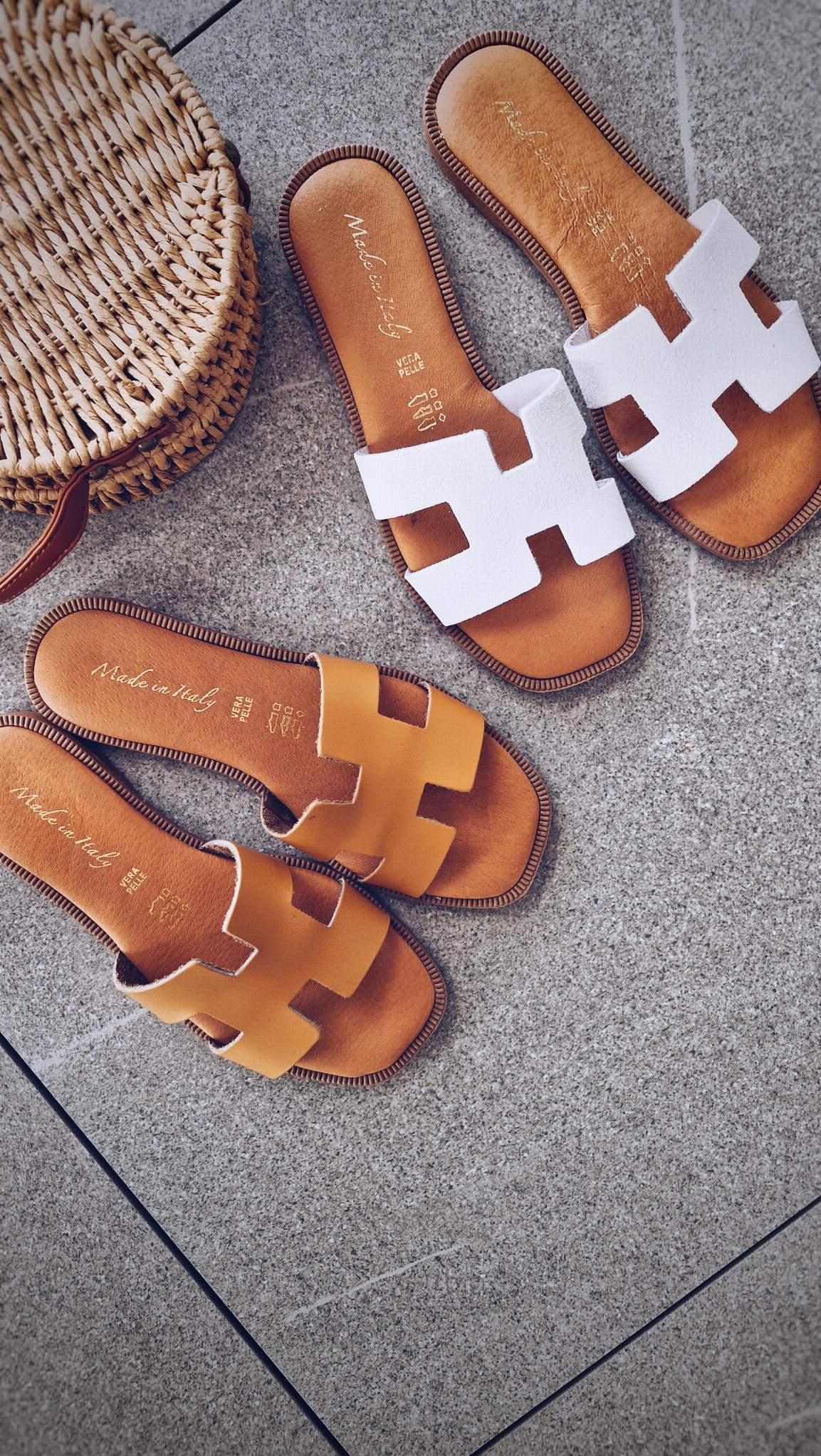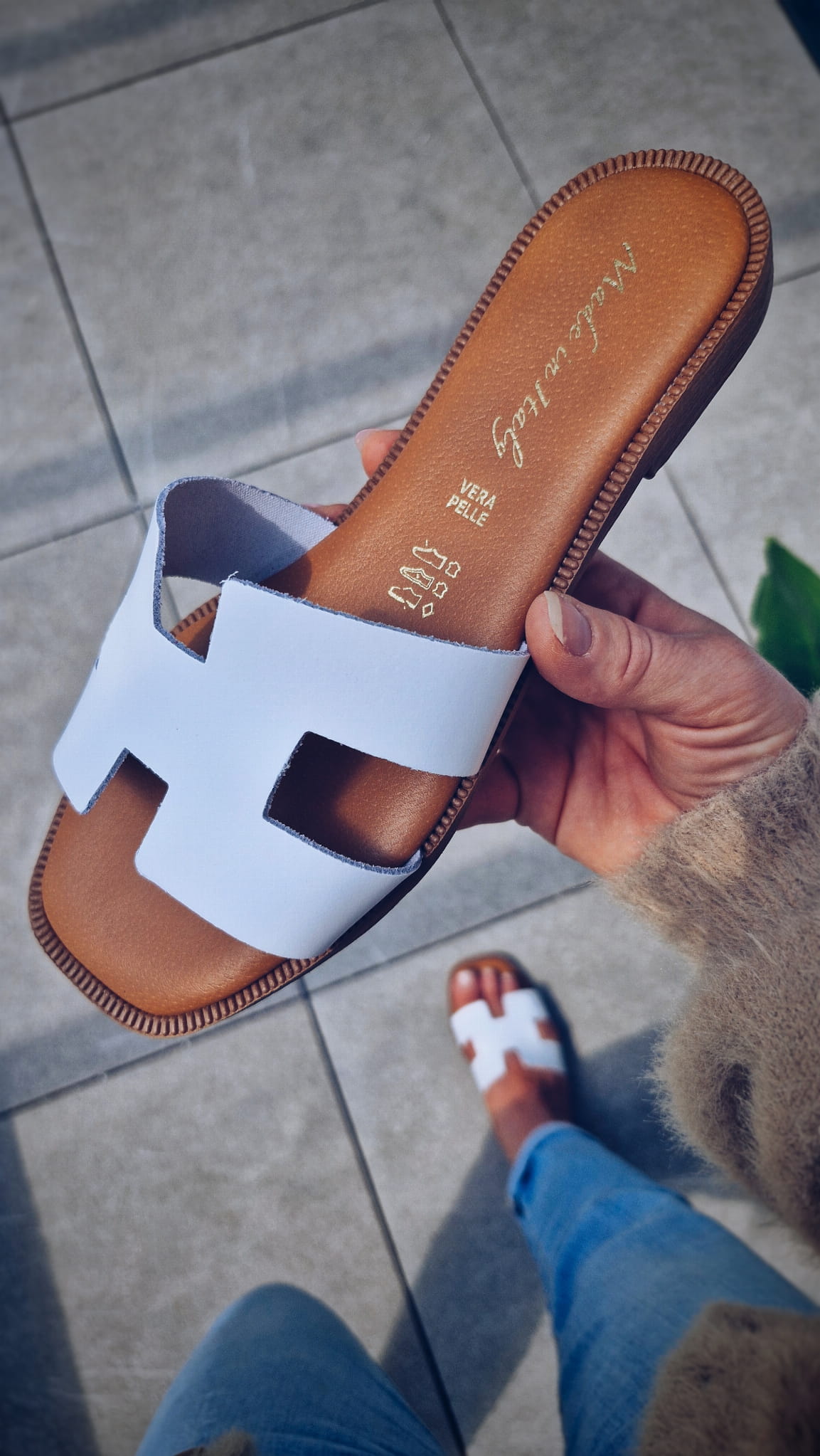 Te klapki to prawdziwa definicja elegancji i komfortu – skóra naturalna, klasyczny biały design w kształcie litery „H” i doskonała wygoda. Idealne na letnie dni, gotowe dodać blasku każdej stylizacji. Niech Twoje stopy poczują luksus!
