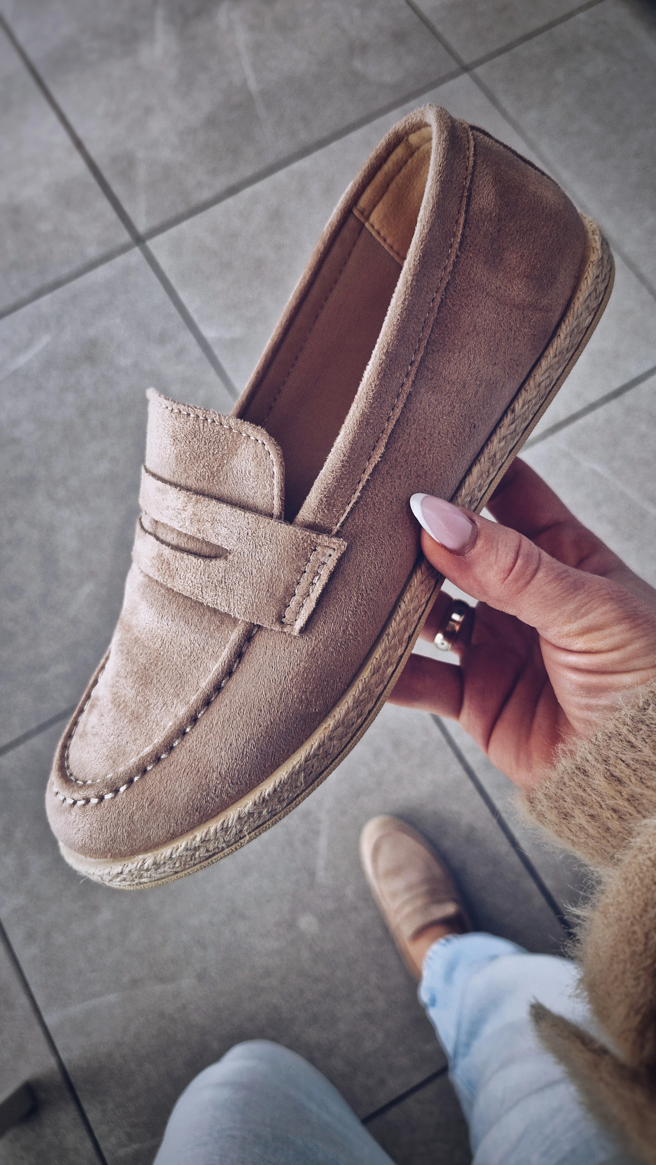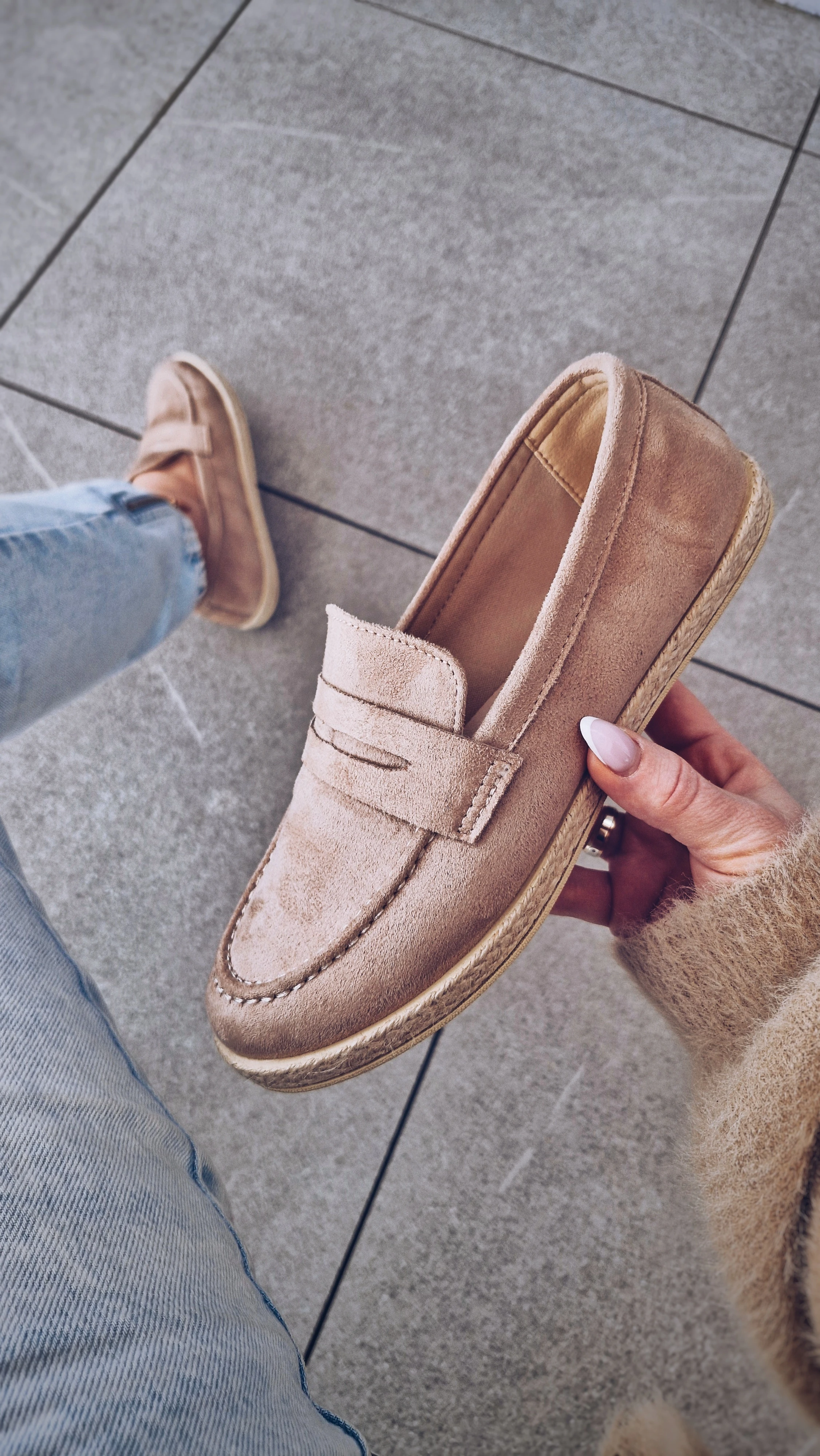 Klasyczne loafersy w ciepłym beżowym odcieniu