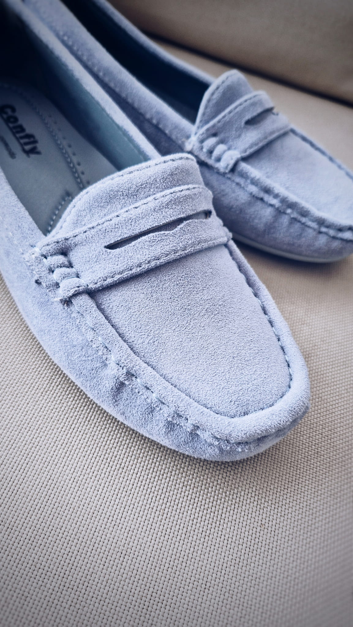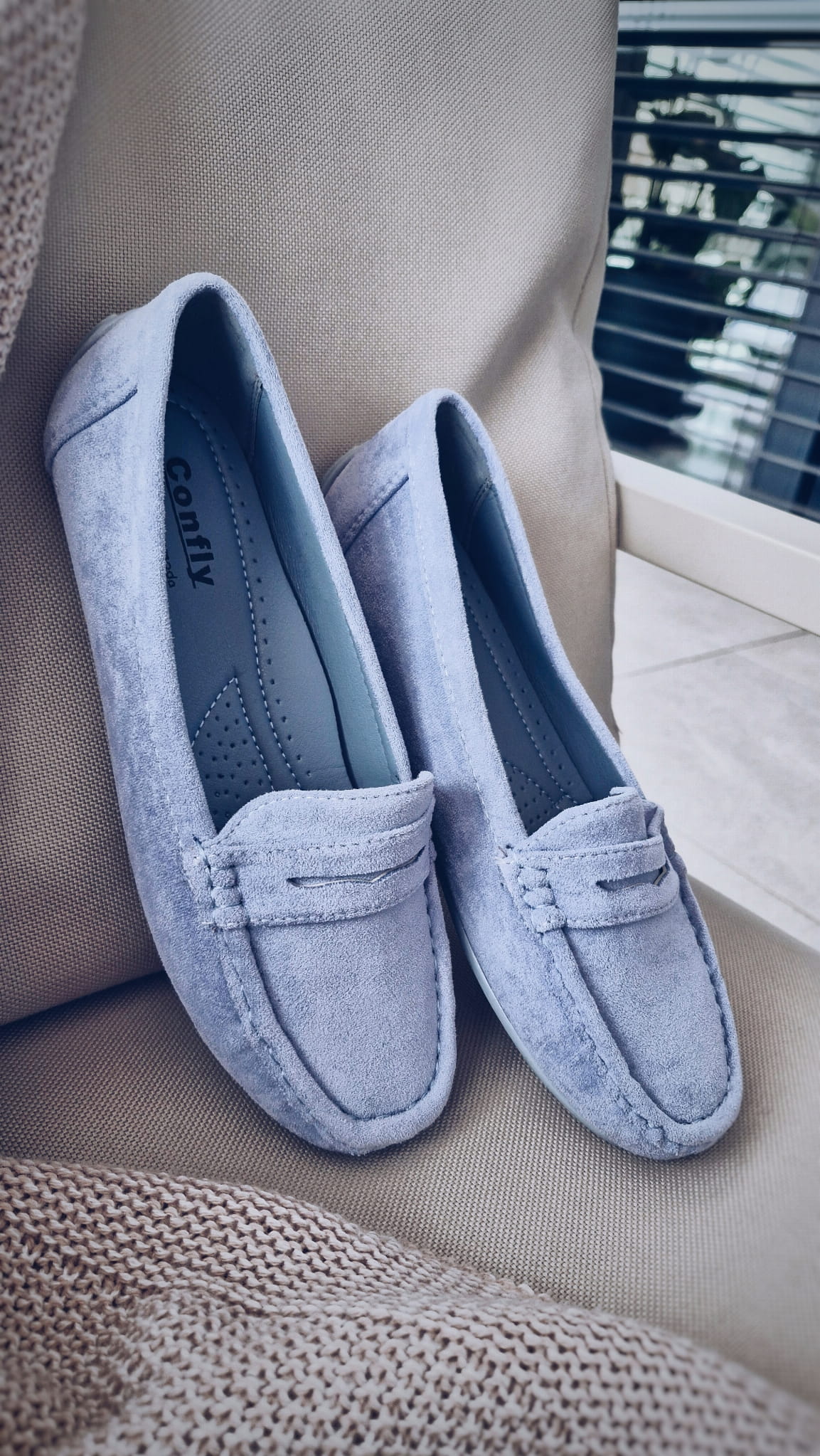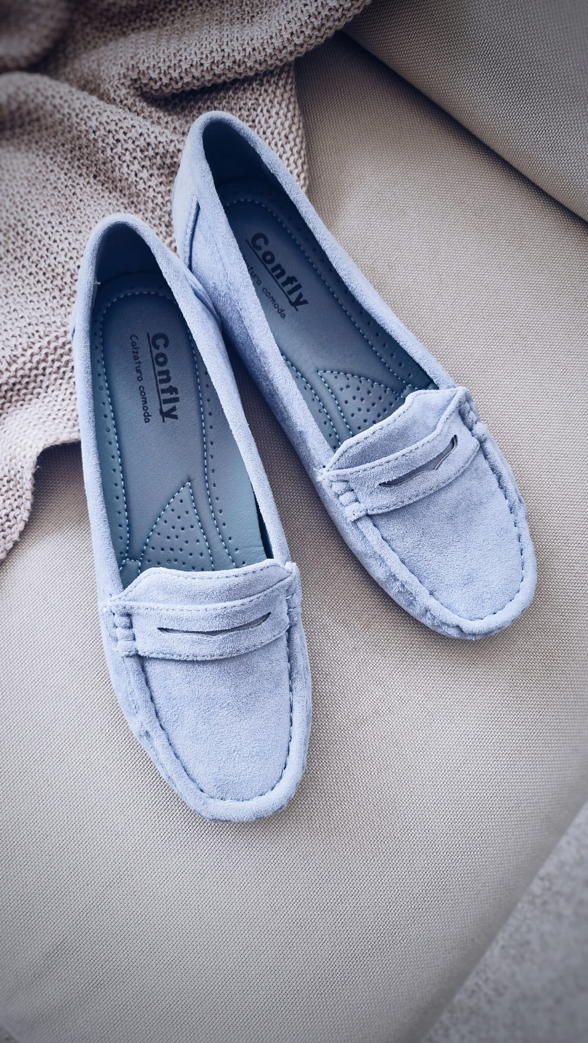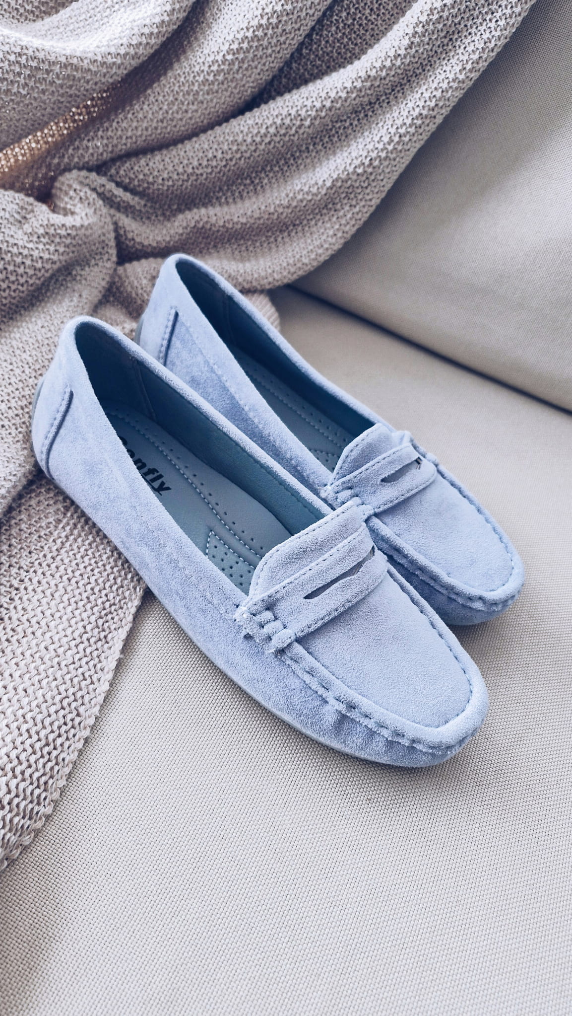 Mokasyny Megan to połączenie subtelnego niebieskiego,